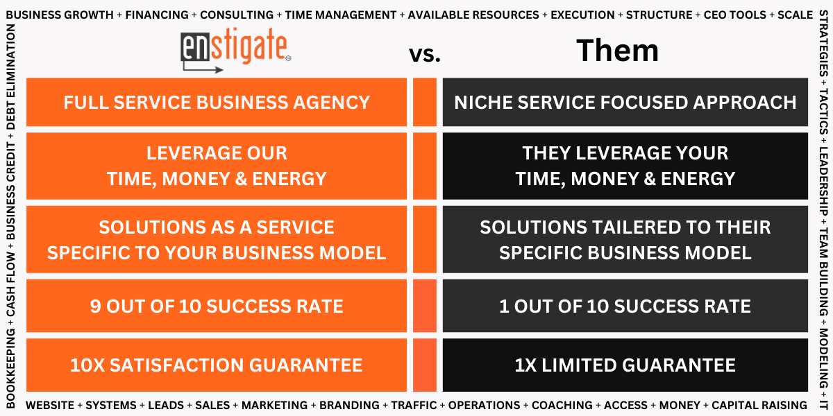 For the past 8+ years we created Guided Programs designed to both create value and provide a true service to the business owner helping them access the right money, at the right time, in the right way. The enstigate® methodology and support was effective up to a 9 out of 10 Success Rate.