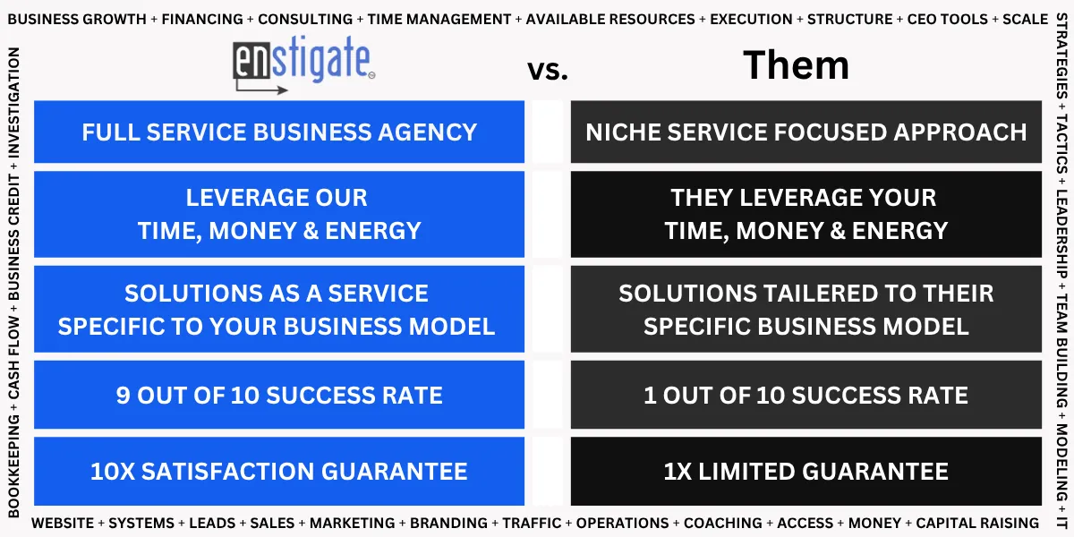Over 8+ years of growing all types of businesses with our Enstigate® Methodology.